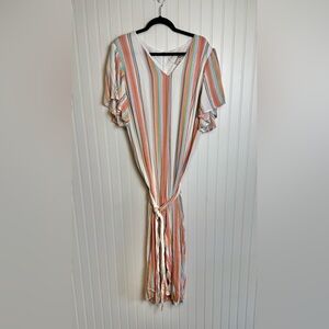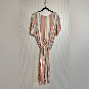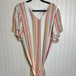 Savanna Jane Rainbow Stripe Short Sleeve Jumpsuit Tie Belt F11
