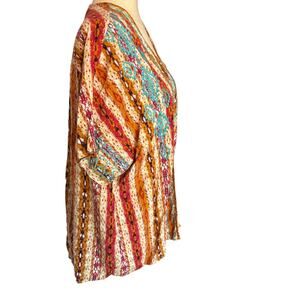 Savanna Jane SZ M/L Multicolor Boho Aztec Floral Embroidered Open Front Kimono