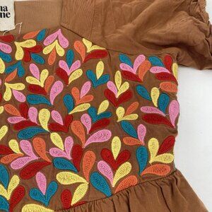 Savanna Jane Size Small Tunic Mini Dress Brown Pink Red Blue Yellow Embroidered