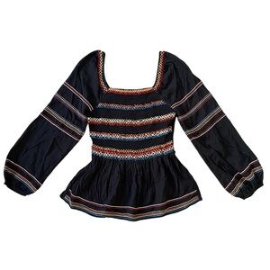 Savanna Jane Smocked Embroidered Balloon Sleeve Top Size S Boho Pumpkin Patch