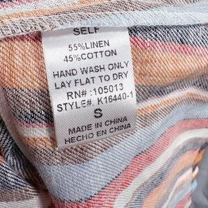 features: Linen/Cotton blend fabric. Spilt V neckline. Colorful embroidery on a serape print. Bell sleeves. Relaxed fit a-line fit with a flowy bodice.