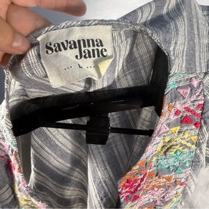 Savanna Jane Striped Blouse with Colorful Embroidery