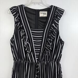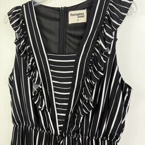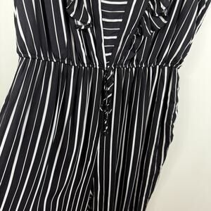 Savanna Jane Striped Jumpsuit 2X Drawstring Waist Black White Ruffle Square Neck