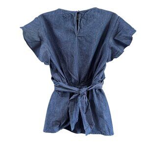 Savanna Jane Top L Embroidered Denim Tunic Tie Back Flutter Sleeve