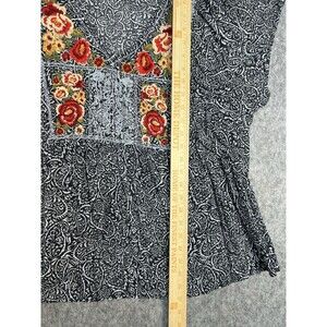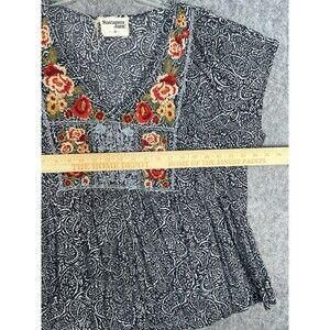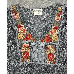 Savanna Jane Top Women's 2X Black Paisley Floral Embroidered Boho Artsy Plus