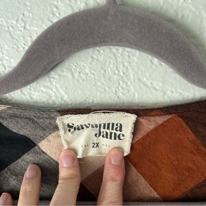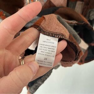 DETAILS: Savana Jane top women's 2X, steal away home style, embroidered with plaid print, elasticized cuffs, relaxed fit. Cotton, hand wash.