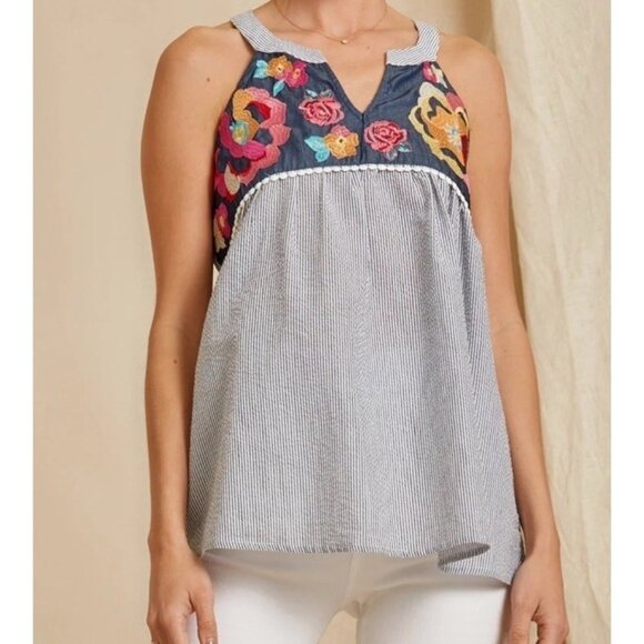 Savanna Jane Women’s 3X Embroidered Sleeveless Top Seersucker Boho Coastal