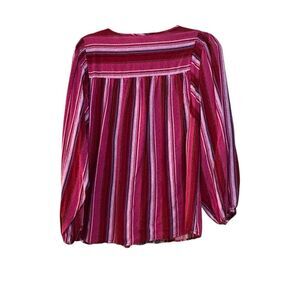 Savanna Jane Women's Blouse Sz S Pink striped Embroidered Floral Puff Sleeve Blouse