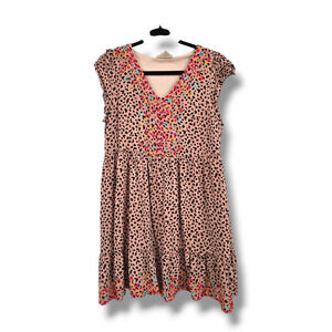 Savanna Jane Women's Boho Peasant Embroidered Detail Spotted Dress Size Large