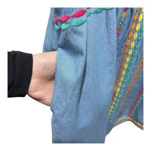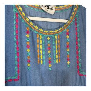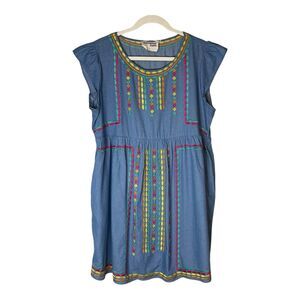 Savanna Jane Women’s Large Chambray Boho Dress Embroidered Geometric Y2K