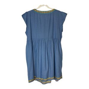 Savanna Jane dress, boho denim dress, embroidered babydoll dress, chambray summer dress, Y2K geometric dress, festival boho outfit, women’s size large babydoll dress, retro embroidered dress