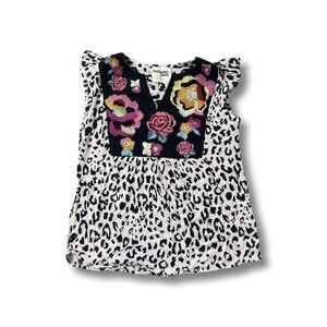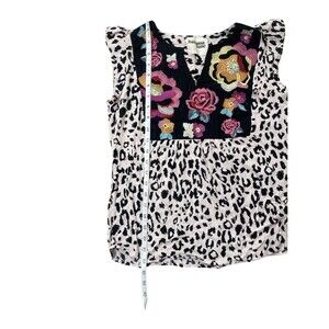 Savanna Jane Womens Small Leopard Print Embroidered Floral Flutter Sleeve Blouse.
