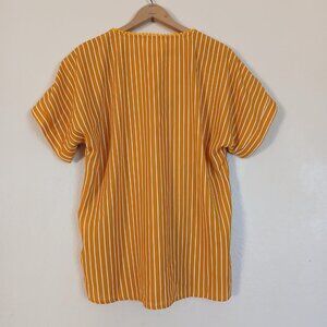 Savanna Jane Yellow & White Short Sleeve Striped Floral Blouse Women's Small