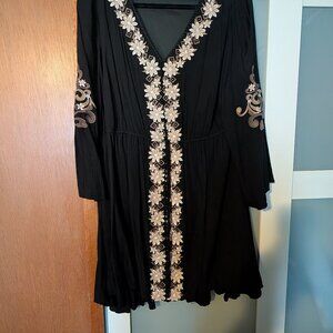 Drawstring front. Embroidered flowers on sleeves and down the front.
