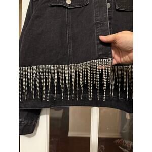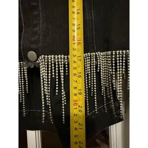 Savanna Jane rhinestone fringe cropped front denim jacket black medium western