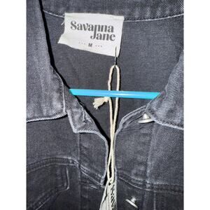 Savanna Jane rhinestone fringe crop front denim jacket black medium western NWT