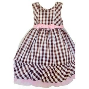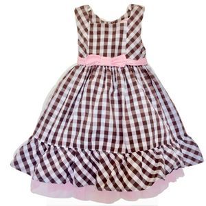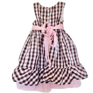 Savannah Dress PLAID size 2 Toddler Sleeveless tulle Brown Pink White