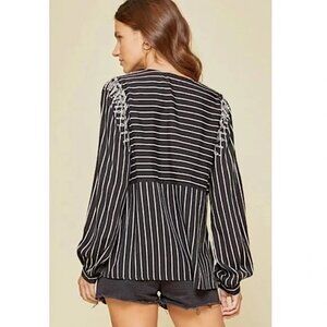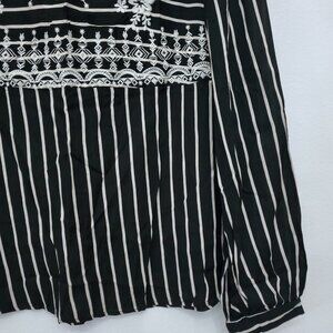 Savannah Jane Black Striped Floral Embroidered Long Sleeve Women's Top Medium