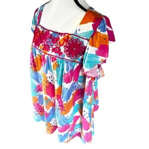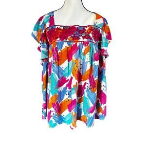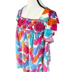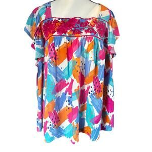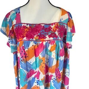 Savannah Jane Blouse Womens Size 2X Embroidered Peasant Top Watercolor Plus Top