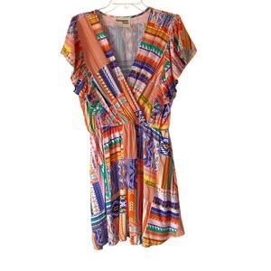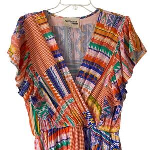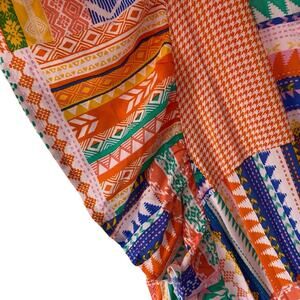 Savannah Jane Patchwork Print Ruffle Mini Dress size large Blue Orange