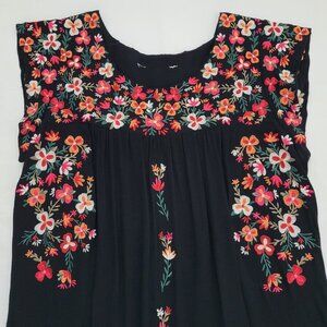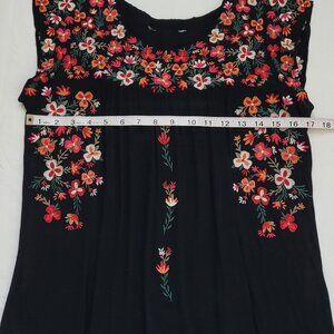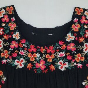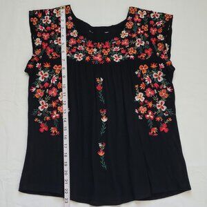 Savannah Jane Women's Embroidered Boho Flowy Floral Black Top Size Small