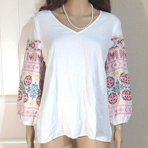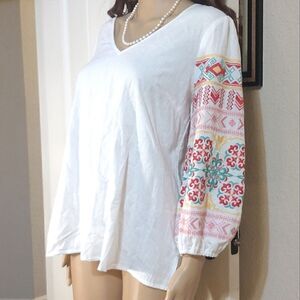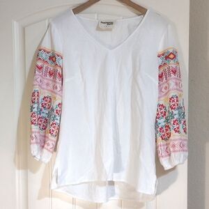 Savannah Jane Women's Size Large Embroidered Long Sleeve Cotton Top