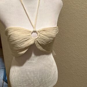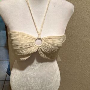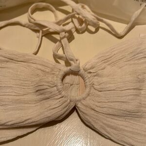 Savannah Marrow Women's M Organic Cotton Summer Top Cream Micro Tie Up New
