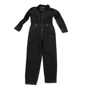 Savannah Miller Next denim studded utility jumpsuit coverall 10 medium P 7060
