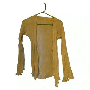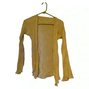 Wrap yourself in effortless elegance with this chic cream cardigan, perfect for both casual outings and business settings. Its open front style and waterfall draping create a graceful silhouette that complements any outfit. Designed for a regular fit with long sleeves, this versatile sweater is a must-have for your spring and fall wardrobe. The solid yellow hue adds a pop of color, making it a standout piece. Plus, it's machine washable for easy care. New with tags, this cardigan is ready to enhance your style with its simple charm and functional features.
