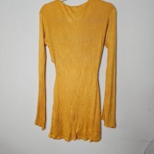 Savannah Morrow Mustard Long Sleeve Keyhole Side Cut Outs Bamboo Mini Dress SM