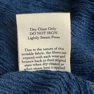 Due to the nature of this wrinkle fabric, the fibers can expand with each wear and bounce back to their original state when dry cleaned or when steam heat is applied