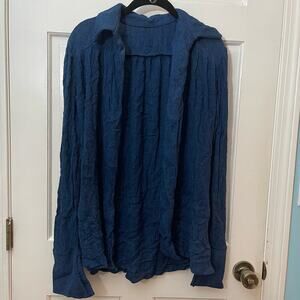 Savannah Morrow Open Front Blouse Top Shirt L/XL Midnight Blue Long Sleeve
