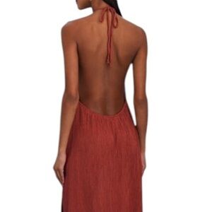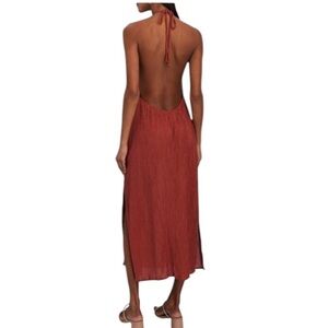 Savannah Morrow The Label Lana Dress Burnt Orange Halter Maxi Silk Bamboo XXL