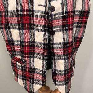 Color: Tartan Pattern in red, black and white