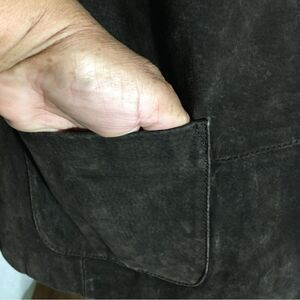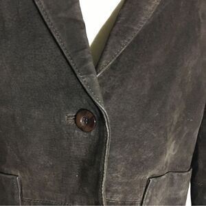 Vintage 100% Leather Brown Jacket. Petite. V-neckline. Front button closure. Two front pockets. Pre-owned in good condition. Please refer to pictures for best description and condition verification.