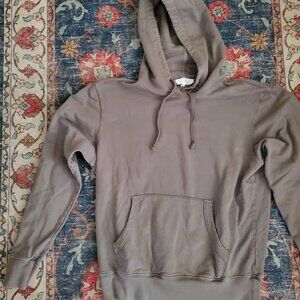 SKU is an excellent brand if you're looking for quality sports and casual wear. They manufacture all of their clothing in the United States and all of their clothing reflects this. This piece is no different, it has a heft to it. It feels soft, yet strong. The color is a neutral tan or beige which looks really good with black. I typically wear a size M and the hoodie fits great. Should fit a L person even better. If you're an active person and want a quality Made in the USA hoodie, then look no further. It's a nice upgrade if you typically wear brands like Gymshark. It feels better and looks great