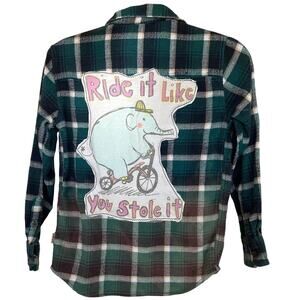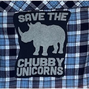 Save The Chubby Unicorns Plaid Flannel Button Down Shirt Girls SIZE 14 Unique
