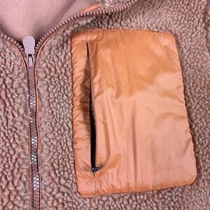 Features: Nylon zip chest pocket; two front zip hand pockets; full-length front zipper; soft high-pile sherpa fleece
