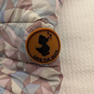 Worn Condition - the price reflects this - Save The Duck Girls Hooded Puffer Fill Insulated Winter Jacket in Geometric, size 4.