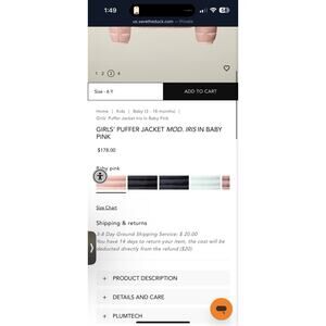 Save The Duck Girl's Insulated Lily Jacket PINK $179, Size: 14 NWT