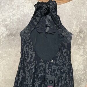 Save The Queen Dress Womens Sz Medium Black Halter Trumpet Train Evening Open