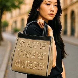 Save The Queen Tan Leather Tote Bag Made In Italy Strap Handle 13.5x15 Vintage