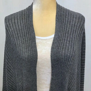 NWT. Grey ribbed knitted Cape/Poncho for Women One Size. Great for layering, open front style, has sleeves holes as shown in pic, made with recycled bottles. Internal shirt and necklace are not included. Pictures are part of description.