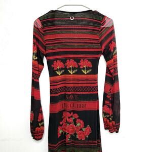 Save the Queen Dress Red/black Womens L Large Floral Y2K Vintage Poppies Sheer