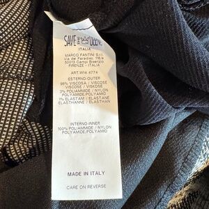 Brand new with tags! Stunning Save the Queen mini dress featuring a unique mixed-fabric design with contrasting textures and patterns. Beautiful detailing at the neckline and bold houndstooth hem create a striking, artistic look.