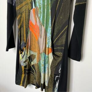 Found neckline long sleeve dress with button detail and solid black cowl back. Pockets on the front!