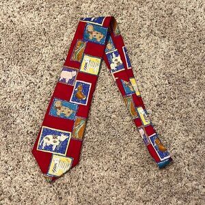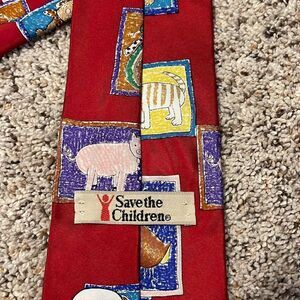 This tie is made by Save The Children. It’s a red silk with drawn animals all over. The drawings were made by Traci - age 9. Excellent pre owned condition. Smoke and pet free home.