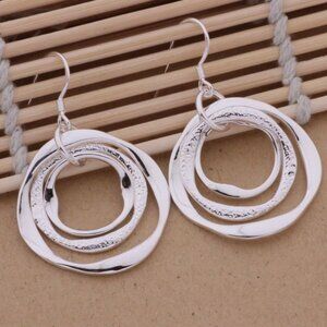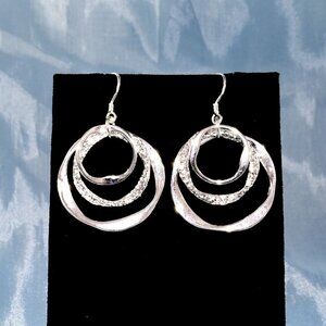 Saviah Lane Silver Abstract Circle Trio Dangle Earrings Gift Packaged