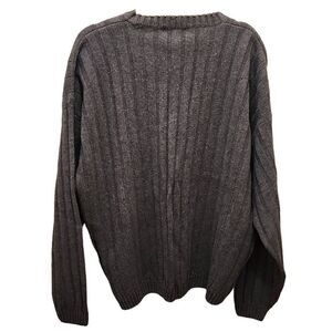 Savile Row Men's Gray Striped Ramie Ribbed Crew Neck Pullover Sweater Large