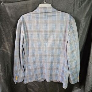 Savile Row Men’s Plaid Blazer Sport Coat Blue Gray Check Classic 42R